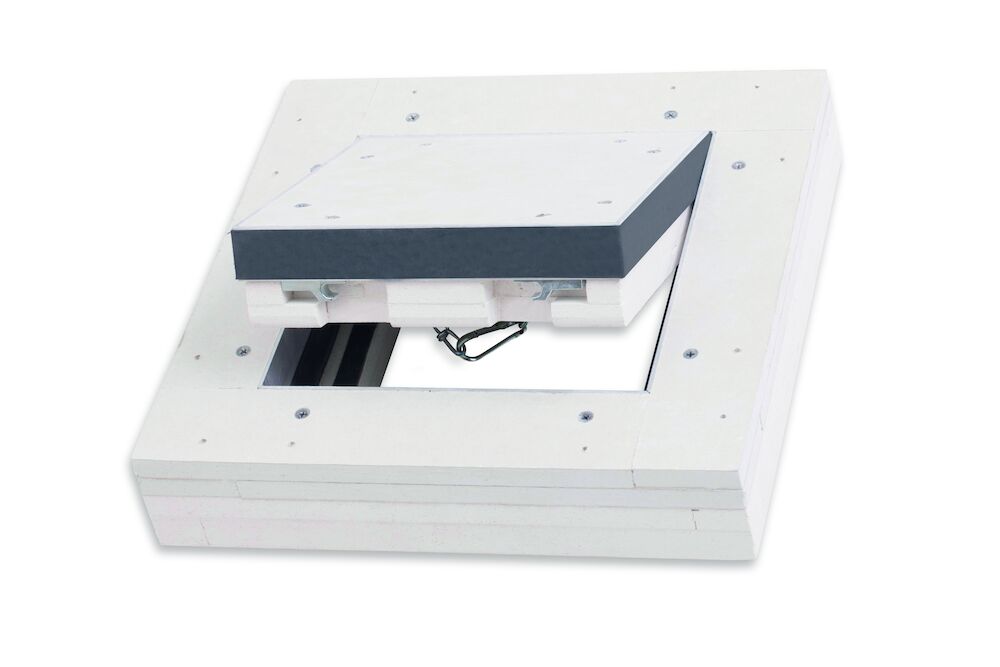 Ревізійні дверцята Siniat® Fire-tech EI120 призначені для установки в ненесучі стіни з гіпсокартонних плит Siniat. Двері складаються з двох рам з алюмінієвих кутників: зовнішньої рами та внутрішньої рами, яка є структурним каркасом дверного полотна. Дверне полотно заповнене гіпсокартонними плитами Nida Ogień+, 2х12. є додаткова шар плит Promatect®-XS товщиною 2х12,5 мм. Облицювання виконано з гіпсокартону Nida Ogień+ товщиною 2х12,5 мм. Каркас ревізійних дверей потовщений до 60 мм за допомогою додаткових планок з плит Promatect®-XS товщиною 1х15,0 + 1х20,0 мм. З внутрішньої сторони на раму приклеєна розбухаюча протипожежна пломба товщиною 2 мм. З внутрішньої сторони рами кріпиться обідок з плит Promatect®-XS товщиною 2х12,5 мм. З внутрішньої сторони обід покритий прокладкою, що розбухає, товщиною близько 1 мм. В якості додаткового обладнання можна встановити циліндровий замок
